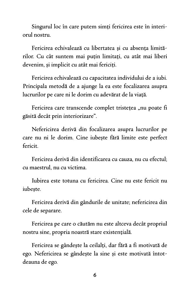 Ce este fericirea? Singurul loc în care putem simți fericirea este în interiorul ființei. FERICIREA ESTE TOTUNA CU CAPACITATEA INDIVIDULUI DE A IUBI.